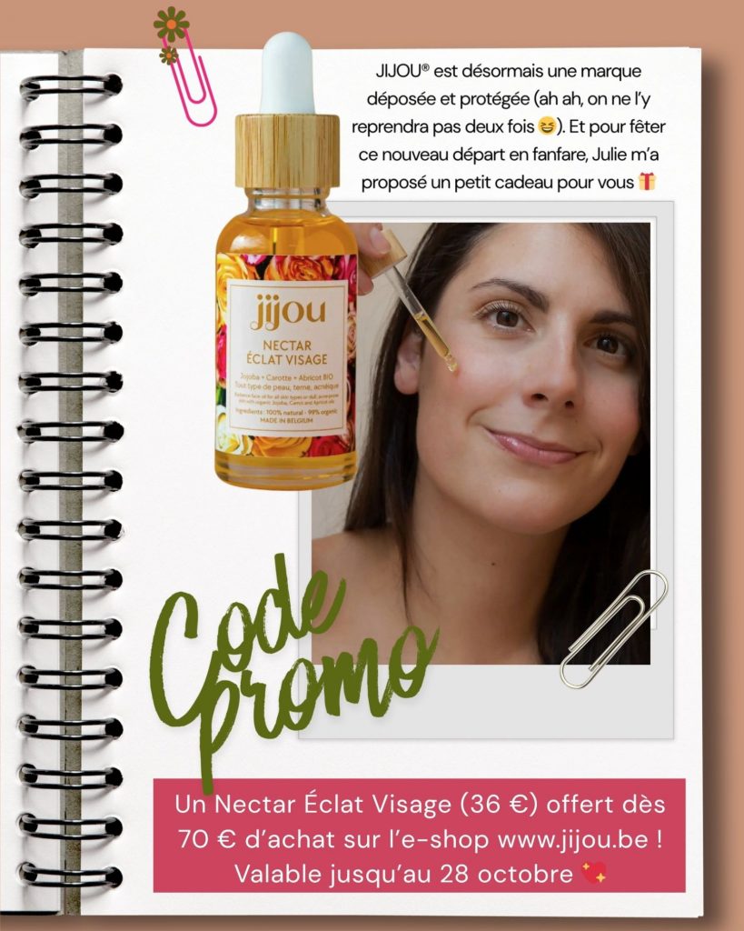 code promo = GOODLUX pour un Nectar Éclat Visage (36€) offert dès 70€ sur l’e-shop http://www.jijou.be !